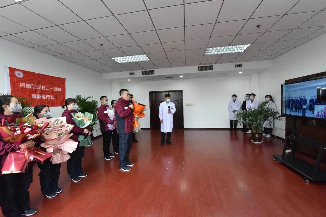 焦開河指出,面對(duì)突如其來的新冠肺炎疫情的嚴(yán)峻考驗(yàn),521醫(yī)院7名援鄂醫(yī)療隊(duì)隊(duì)員堅(jiān)決響應(yīng)習(xí)近平總書記和黨中央號(hào)召,肩負(fù)集團(tuán)公司黨組和全集團(tuán)23萬干部職工的重托,聞令而動(dòng)、挺身而出,奔赴抗擊疫情第一線。援鄂期間,杭博、郭苓、緱豪兵、楊嬌4位同志,充分發(fā)揮了共產(chǎn)黨員的先鋒模范作用,呂戈、侯永生、曹利娜3位同志火線入黨,不辱使命、不負(fù)重托,出色完成了任務(wù)。7位同志的辛勤付出,充分體現(xiàn)了“把一切獻(xiàn)給黨”的人民兵工精神,體現(xiàn)了大愛無疆的醫(yī)者仁心,體現(xiàn)了集團(tuán)公司大國頂梁柱的責(zé)任擔(dān)當(dāng),為黨旗爭了光,為集團(tuán)公司添了彩。全集團(tuán)廣大干部職工要學(xué)習(xí)他們的先進(jìn)事跡,為奪取疫情防控和實(shí)現(xiàn)全年目標(biāo)任務(wù)的“雙勝利”不懈奮斗!