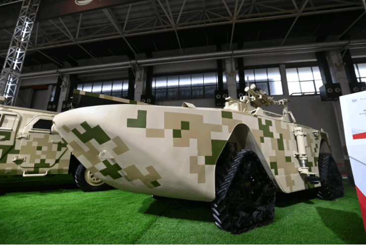 記者現(xiàn)場看到,眾多新型武器裝備已抵達兵器館。其中,兩棲無人戰(zhàn)車和輕型高機動車載蜂群武器系統(tǒng)均為首次亮相。兩棲無人戰(zhàn)車可應對未來多元化兩棲任務;輕型高機動車載蜂群武器系統(tǒng)可執(zhí)行偵察、區(qū)域封控、精確打擊、集群打擊毀傷評估等多樣化任務。