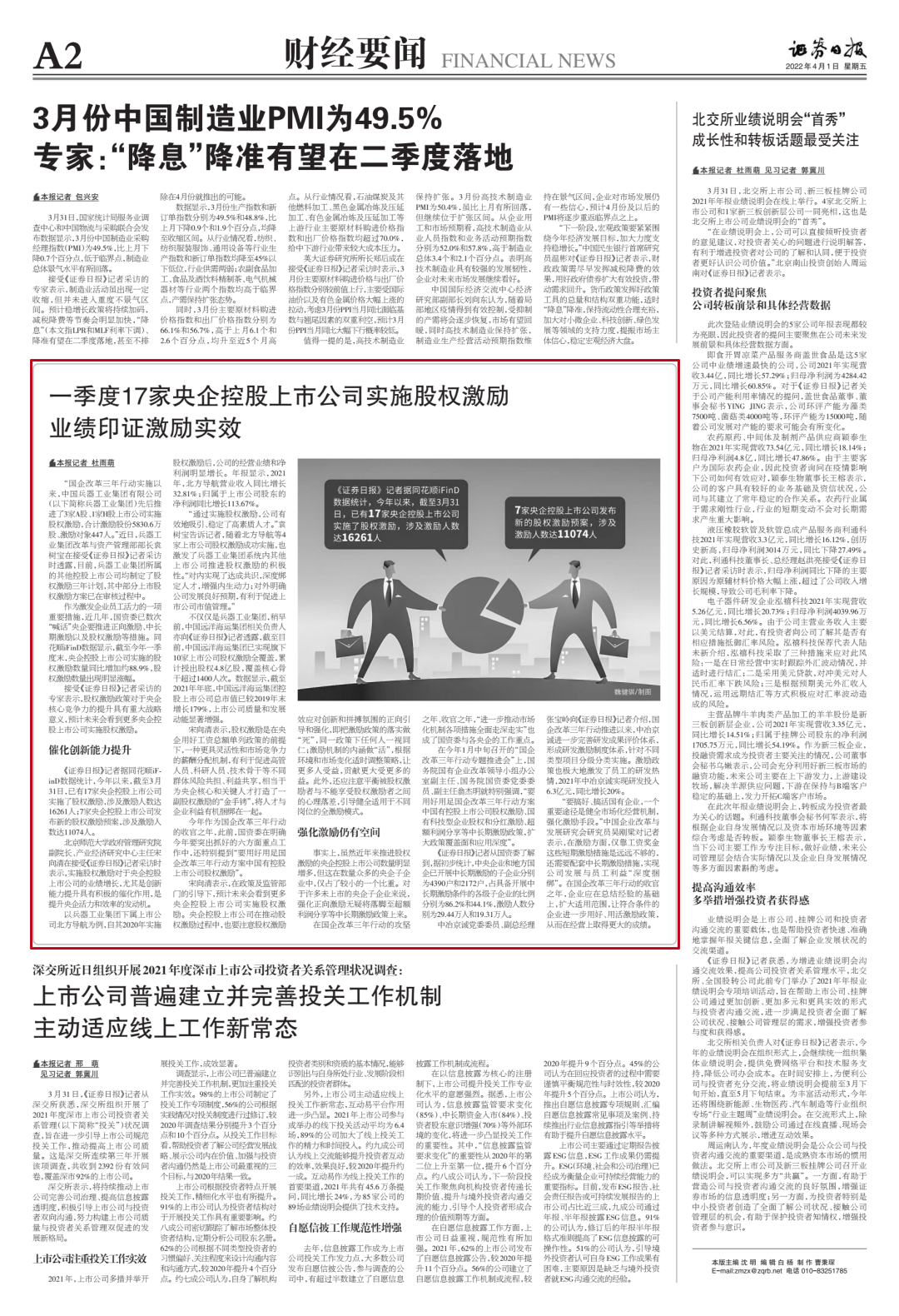 《證券日報》:一季度17家央企控股上市公司實施股權(quán)激勵 業(yè)績印證激勵實效
