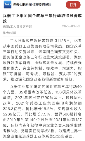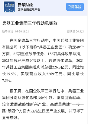 兵器工業(yè)集團國企改革三年行動工作成效引發(fā)廣泛關(guān)注丨國企改革看兵器