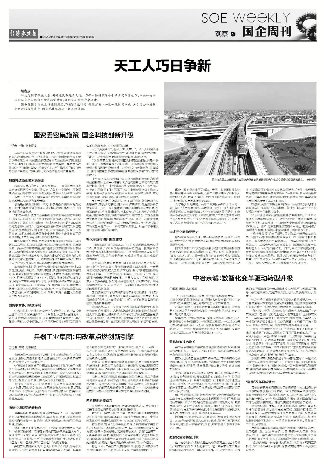 《經(jīng)濟參考報》:兵器工業(yè)集團:用改革點燃創(chuàng)新引擎