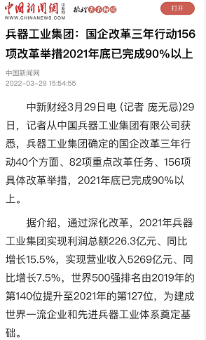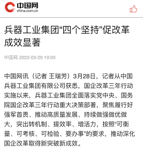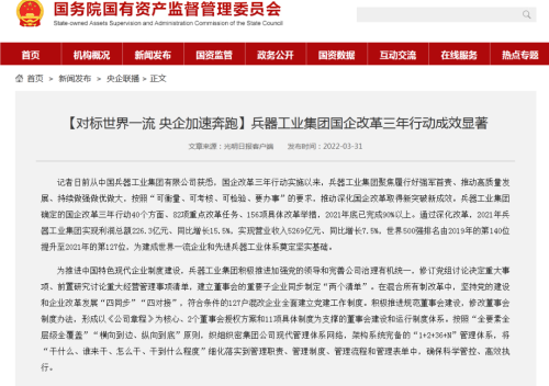 國資委網(wǎng)站:【對標世界一流 央企加速奔跑】兵器工業(yè)集團國企改革三年行動成效顯著