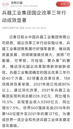 光明日報客戶端:兵器工業(yè)集團國企改革三年行動成效顯著