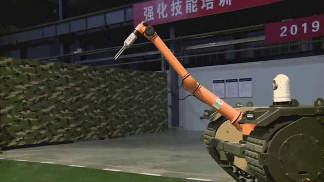 搭載機械手的多功能模塊化履帶無人平臺,就像一個靈活的機器人,面對地上的障礙物,利用機械手將抓取到的危險物品,穩(wěn)穩(wěn)地投擲到防爆倉里,在現(xiàn)場無人操控的情況下,圓滿完成應急救援任務(wù)。