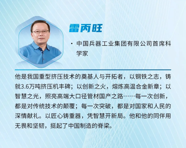 近日,《科學(xué)中國人》雜志社發(fā)布2024“年度科技人物”榜單,中國兵器首席科學(xué)家、北重集團(tuán)雷丙旺當(dāng)選“影響力科學(xué)家”。 雷丙旺是我國極端金屬擠壓技術(shù)的開拓者,扎根邊疆地區(qū)國防特大型企業(yè)工作38年,長期從事金屬成形制造裝備與工藝研究工作。他研制出我國極限制造的大國重器——3.6萬噸黑色金屬垂直擠壓機(jī),一舉打破國外技術(shù)封鎖,填補國內(nèi)空白,實現(xiàn)了超(超)臨界電站核心管道和航空發(fā)動機(jī)高壓渦輪盤粉末合金棒材的中國制造,開發(fā)出成套關(guān)鍵技術(shù),取得一系列原創(chuàng)性成果,促進(jìn)了產(chǎn)業(yè)的融合發(fā)展,創(chuàng)造巨大經(jīng)濟(jì)社會效益。