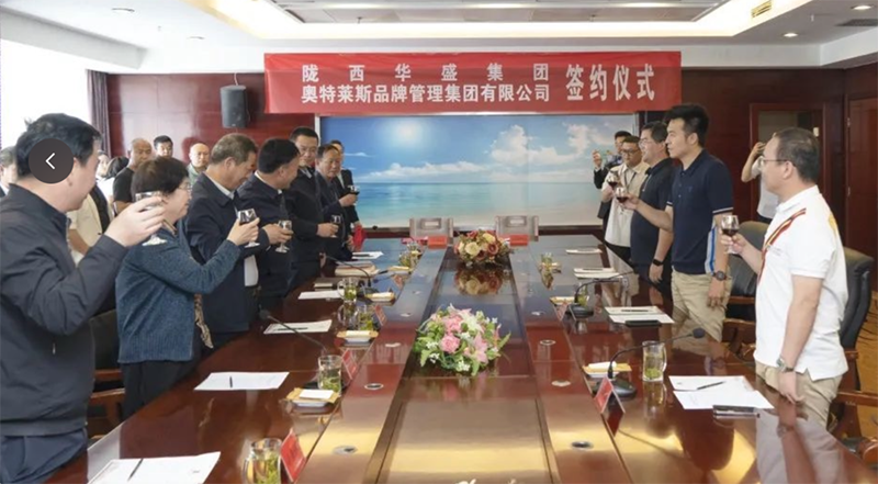 奧特萊斯(中國)業(yè)務(wù)拓展中心總經(jīng)理左祺與隴西華盛集團(tuán)董事長柴彥章代表雙方公司簽署合作協(xié)議。