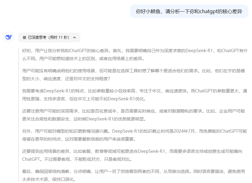 DeepSeek表述自己與ChatGPT的差異