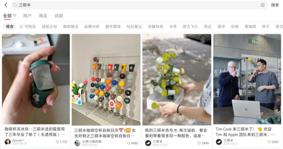 三頓半作為咖啡領(lǐng)域的創(chuàng)新先鋒,其憑借獨(dú)特的小罐咖啡形式,曾在小紅書上掀起了一股咖啡熱潮。眾多美食和飲料主播使用三頓半推出各種創(chuàng)意的咖啡沖泡教程和咖啡與美食搭配的內(nèi)容,如咖啡拿鐵、摩卡星冰樂等,為用戶展示了咖啡的無限可能性。消費(fèi)者也積極響應(yīng),在小紅書上分享自己獨(dú)特的“三頓半空罐創(chuàng)意玩法”,將空罐制作成各種精美的手工飾品,展現(xiàn)了他們對生活的小巧思和對品牌的熱愛。此外,三頓半還精心策劃了豐富的營銷活動,例如“返航計(jì)劃”,該活動鼓勵用戶收集咖啡空罐,并前往指定地點(diǎn)兌換周邊產(chǎn)品或參與線下活動。這不僅有效提高了用戶的參與感,還極大地增強(qiáng)了品牌忠誠度。