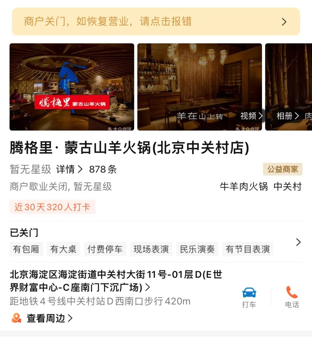 據(jù)大眾點(diǎn)評(píng)最新信息顯示,西貝餐飲集團(tuán)在北京中關(guān)村高調(diào)推出的子品牌“騰格里蒙古山羊火鍋”全國(guó)首店已歇業(yè)關(guān)閉。這家曾以現(xiàn)熬羊骨湯、內(nèi)蒙古二狼山白絨山羊肉為主打賣點(diǎn),開業(yè)首月即登頂區(qū)域火鍋熱門榜的餐廳,在運(yùn)營(yíng)不足半年黯然退場(chǎng)。