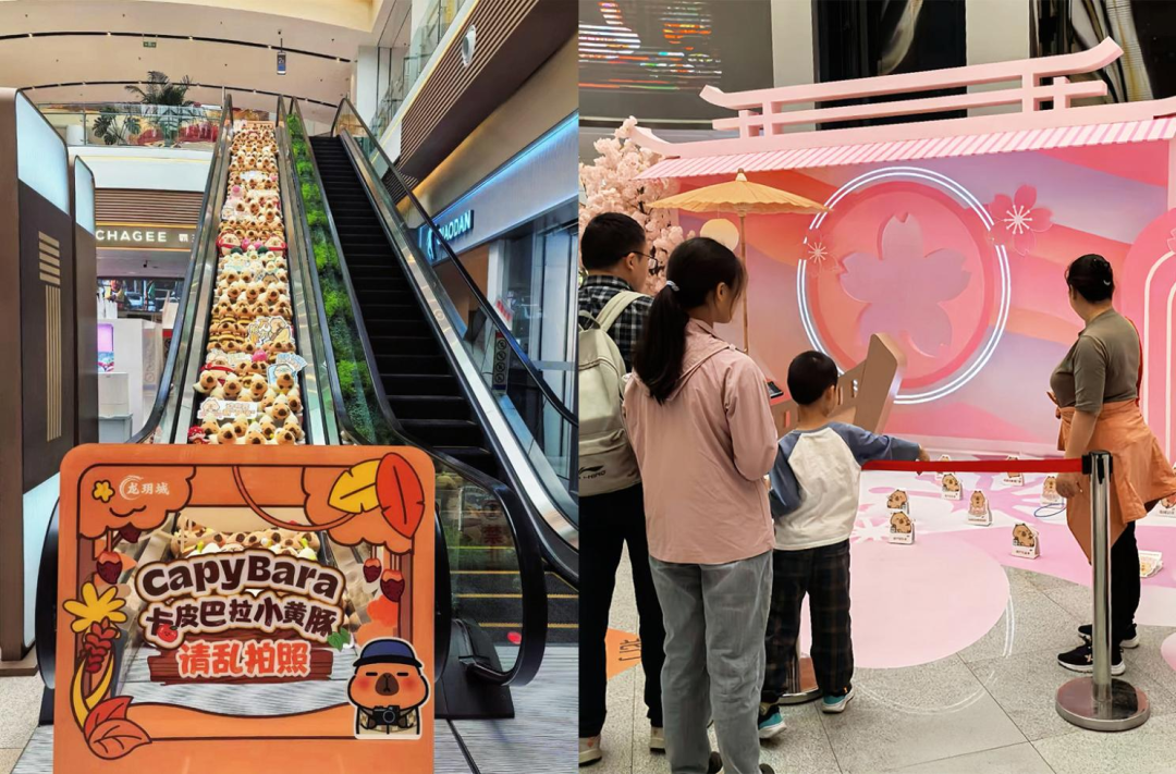 龍玥城自開業(yè)以來根植“悅己主義”持續(xù)打造有趣的沉浸式互動體驗(yàn)活動,今年五一期間更開啟了一場玩趣生活嘉年華,從潮流IP打卡到科普研學(xué),從傳統(tǒng)游戲到驚險表演,精準(zhǔn)覆蓋消費(fèi)者多元化需求。卡皮巴拉小黃豚電梯瀑布快閃活動設(shè)置了一整個電梯的潮流IP卡皮巴拉小黃豚,結(jié)合皮巴拉主題的立牌套圈游戲,吸引眾多消費(fèi)者前來打卡。
